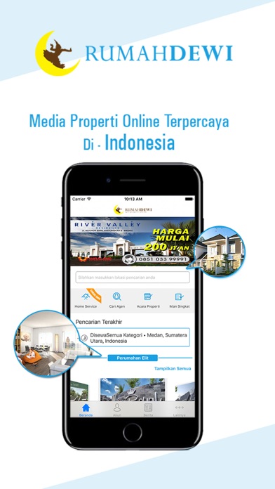 Rumahdewi adalah situs properti terbaik yang akan memberikan kemudahan dalam mencari rumah , apartemen , tanah , dan properti lainnya baik untuk dijual atau sewa dengan informasi seperti spesifikasi , foto dan bahkan peta . Anda juga dapat menemukan Agen Properti yang akan membantu Anda dalam transaksi properti . Mendaftar di Rumahdewi.com untuk mendapatkan informasi terbaru tentang dunia - daftar properti serta daftar jenis yang paling tepat properti , provinsi , kota , dan daerah tujuan , serta harga properti .
