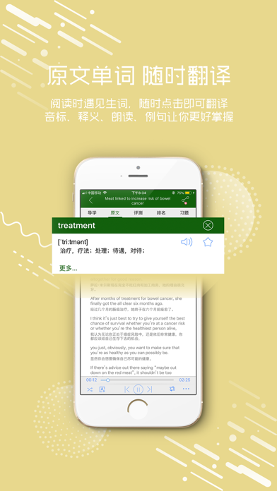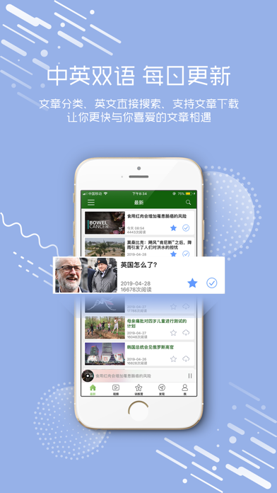 领先的人工智能外语学习平台,数千万用户的肯定!!爱语吧——让您爱上学英语 ************************************************************** 应用上线到现在,先后列入 新品推荐-教育类(中国区) 排行榜第一-教育类(中国区) 畅销榜前五-教育类(中国区) 付费榜前十-总榜(中国区) ************************************************************** “每日英语听力视频”是当前APP商店强大的英语听力和英语口语学习应用, 功能最全功能经典英伦之声,涵盖了英语学习的方方面面,堪称英语学习的“神器”。本款应用是我们爱语吧在总结前一款重量级应用“VOA慢速英语”的基础上,在功能、用户体验以及使用性能上都进行了全面提升,针对当前热门的话题为广大英语爱好者打造的一款集合了“天天更新、新闻视频,六屏播放、离线词库、录音跟读、语音评测,定时停止、屏幕取词、循环播放、后台播放、支持线控、云端同步、支持下载、中英切换、记忆生词、生词查询、话题查询、附带习题、互动评论、学习分享、积分奖励,十项设置”的良好使用体验的最佳英语学习工具,全面提升使用者的听力水平、口语能力、阅读能力、词汇量,为您学习英语注入无限激情! ************************************************************** 我们将专注英语学习,对应用不断的进行维护和优化,不断的追求卓越品质,若能得到您的好评,我们将倍感荣幸和欣慰。 ************************************************************** 主要创意与功能设置如下: 一. 每周更新学英语话题。与我们在的大数据云学习资源库保持内容同步,保证内容的时效性,并且带有中文翻译以及中文简介。 二. 六屏播放,支持录音跟读。并可在设置中开启“自动跟读”,口语轻松掌控。 三. 贴心设计。我们的功能很细致:比如若用户睡前听听力,那么你可以设置时间定时停止播放;暂停后,就会停止内容同步,方便用户查看全文;内容的字体颜色和大小等用户均可设置,甚至是同步内容的位置;晃动设置便可以切换播放/暂停等等。 四. 交流才能进步!评论与口语打分互动交流,并可以将自己的感受分享到微博微信。 五. 所有播放界面均支持屏幕取词,查看释义,听发音,并能添加到生词本。 六. 我们的生词本云端同步,爱语言的网页端和移动端的数十款应用公用一个生词本。内置在线查词,并附带离线词库。 七. 您在查看生词本时, 所看到的单词的顺序是经过我们按记忆规律处理过得,帮助您全面掌握生词。 八. 内容针对不同英语程度的学习者提供全英文和中英文对照两种模式,并可以随意切换。 九. 支持后台播放、后台控制、耳机线控。三种循环播放模式任你选择:单曲、顺序、随机。 十. 您可以在线收听Ai学英语,同时可以下载感兴趣的新闻到本地。 并可在设置中开启“自动缓存”。 十一. 多达十几个设置项,给用户带来全方位最佳体验。 十二. 兴趣是学习的切入点和突破口。我们提供英文搜索功能,用户可以搜索自己感兴趣的关键字,查找自己喜欢的话题进行收听和学习。 十三. 好句子可以收藏起来。并且支持点句播放与点句分享。 ************************************************************** “爱语言”旨在开发外语学习AI精品应用,可以加入我们的外语学习QQ群:710124188 ,祝您学习进步,天天向上。