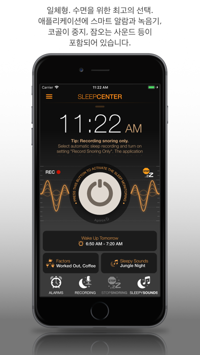 수면 센터는 최고의 일체형 수면 애플리케이션입니다. 네 가지 모듈(녹음기, 스마트 알람, 코골이 멈춤, 잠오는 사운드)로 구성되어 있습니다. 녹음기 수면 중 잠꼬대나 코골이를 녹음(자동 또는 수동 감도 레벨, 스마트 코골이 감지를 활용하여 코골이만 녹음)하며 야간의 방 소음 그래프를 생성하며 총 코골이 시간을 기록합니다. 스마트 알람 가장 얕은 수면 단계에서 쉽게 기상할 수 있도록 도와주고 매일 아침 이완된 상태로 일어날 수 있게 해줍니다. 자연스럽게 잠 들고 수면 효과성을 최대화하세요. 코골이 멈춤 코골이를 감지하면 선택한 사운드를 재생하거나 iPhone 진동을 활용하여 코골이를 멈춰보세요. 잠오는 사운드 이완을 돕고 더 쉽게 잠들 수 있도록 특별히 선별한 사운드를 재생합니다. 애플리케이션이 수면을 감지하면 자동으로 사운드 재생을 정지하는 기능인 자동 페이드아웃 시간 기능이 있습니다. 이 기능에 감사하게 될 것입니다. 트래커 데이터를 활용하고 자신만의 요소(활동/수단/약물/직접 입력)를 입력하면 수면에 긍정적인 영향을 주면서 코골이를 줄일 수 있는 요소가 어떤 것인지 찾을 수 있습니다. 수면/야간에 대한 간편하고 효율적인 분석을 위해 원하는 대로 보기 좋은 통계 차트를 구성할 수 있습니다. 코골이 감지 기능은 인공지능(A.I.)에 기반한 것으로 Apple의 새로운 머신러닝 기술의 지원을 받은 것입니다. 다수의 코골이 샘플을 활용하여 통계와 코골이 감지 기능 자체의 정확도가 매우 높습니다. 지시 사항에 기기를 바르게 놓는 방법이 있습니다. 하일라이트: - 녹음 사운드 감도 조절 가능: 방마다 다양한 사운드 조건에 따라(조용한 방 또는 넓은 환경 등) 사용 가능. - 최첨단 코골이 감지 기능: 인공지능(A.I.)에 기반한 정확한 코골이 감지 - 코골이만 녹음 가능 - 녹음 또는 재상 중 오디오 시각화 - 자주 쓰는 녹음 - 친구와 녹음을 공유: 이메일이나 iMessage, Facebook의 포스트를 통해 녹음을 전송하세요. - 무제한 알람: 맞춤 알람, 일일 알람, 주간 알람 등을 설정하세요. 포함된 알람 사운드나 자신만의 iPod 음악을 사용할 수 있습니다. - 스마트 기상: 가장 얕은 수면 단계에서 점진적인 알람으로 깨어납니다(동작 기준). - 수면 트래커: 내역 전부와 보기 좋은 차트로 구성된 수면 사이클 분석 및 통계. - 흔들어 스누즈: 화면을 열거나 비밀번호를 입력할 필요가 없습니다. - 코골이 멈춤: 코골이 감지 시 선택한 사운드를 플레이하거나 iPhone 진동을 활용할 수 있습니다. - 잠오는 사운드: 사운드 40개 이상/이들 사운드가 혼합될 가능성 있음. - 요소, 기상 시 기분, 메모: 사용자가 매일 밤 다양한 요소들(술, 커피, 스트레스 등)뿐만 아니라 기상 후 기분 혹은 사용자가 직접 입력한 메모를 배치할 수 있습니다. - 활성화 지연: 일정 시간 후 모니터링을 시작합니다. - 백그라운드 모드: 모니터링이 백그라운드 모드에서도 가동됩니다. 또한 알람이 배경에서 울립니다. - APPLE HEALTH 통합 Apple Health 데이터베이스로 수면 분석 내용을 저장할 수 있습니다(선택). - iCLOUD 동기화: 기기 간 동기화/무료와 유료 버전 간 동기화 - CSV 파일로 내역 내보내기 - APPLE WATCH: 알람이 작동되거나 코골이를 감지하면 수면 중 움직임을 추적하여 햅틱(소리, 진동)이 작동합니다. 다음에 주의하세요. * iPhone(iPad)를 충전기에 연결하기를 권장합니다. * 수면을 방해 받지 않으려면 iPhone(iPad)에서 "비행기 모드"나 "방해하지 마세요"를 설정하세요. * 지시에 따라 iPhone(iPad)를 놓으세요. 고객 지원 고객의 행복이 최우선입니다. 앱을 사용하면서 문제가 있을 경우 [email protected]으로 연락주세요. 구독 정보 구매 확정 시 iTunes 계정으로 결제 금액이 청구됩니다. 구매 후 계정 설정에서 구독을 관리하고 자동 갱신을 끌 수 있습니다. 현재 구독 기간 종료 전 최소 24시간 전에 자동 갱신을 끄지 않으면 구독이 자동 갱신됩니다. 현재 구독 기간 종료 전 24시간 전에 갱신 비용이 계정으로 청구됩니다. 구독 취소 시 해당 기간 종료까지는 사용할 수 있습니다. 자동 갱신이 비활성화되지만 현재 구독 기간에 대해서는 환불하지 않습니다. 무료 체험 기간이 있을 경우, 그 중 사용하지 않은 부분은 구독 구매 시 무효화됩니다. 사용 약관: https://apirox.com/docs/sleep_center_lite/terms_and_conditions.php 사용 약관: https://apirox.com/docs/sleep_center_lite/terms_of_use.php 개인정보 보호정책: https://apirox.com/docs/sleep_center_lite/privacy_policy.php