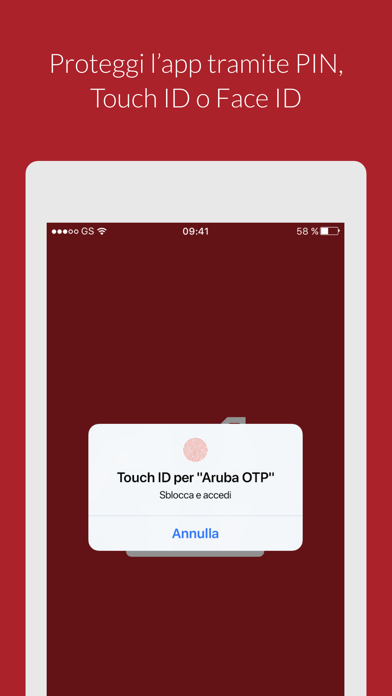 App per la generazione di One Time Password per: - Servizio SPID (Servizio Pubblico per l’Identità Digitale), per l'accesso ai Servizi online della Pubblica Amministrazione ed altri Servizi Web che aderiscono al Sistema SPID - www.spid.cloud - www.pec.it - Servizio di Firma Remota ArubaPEC – www.pec.it – www.aruba.it - Servizi Cloud – www.cloud.it – www.aruba.it - Pannello di Gestione Aruba Business – https://admin.arubabusiness.it