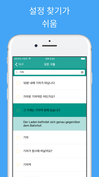 *** 독일여행을 대비해서 독일어를 배우세요 *** 가볍게 배우는 독일어은 여러분을 빠르고 쉽게 독일어를 배울 수 있도록 만들어 주는 무료 독일어 어플리케이션입니다. 모슨 독일어 어구와 단어들은 독일의 고유의 발음과 알파벳을 볼 수 있습니다. 발음은 독일 현지인에 의해서 녹음되어 졌습니다. 관심있는 어구와 단어들을 복습하고 싶을 때는 별 모양을 눌러 저장할 수 있습니다 반복 기법을 이용한 단어카드를 가지고 저장된 단어들을 공부할 수 있습니다 여러분의 지식을 준비되어있는 독일어 퀴즈를 통해 판단해보고 여러분의 성적을 확인해 보세요 *** 독일여행시 유용하게 쓰입니다 *** 독일에서 지내기 위해 독일어 Phrasebook를 사용하세요. 중요한 일상적인 표현는 모두 포함되어 있습니다. 예를 들어, 독일에서 택시 기사에게 여러분이 가고 싶은 곳을 어플리케이션을 이용하여 보여주세요 여러분이 원하는 모든 어구와 단어들을 빠르게 찾을 수 있습니다 *** 주된 특징 *** * 원어민의 녹음 참여 * 질 좋은 오디오 시스템 * 반복 학습 시스템 * 여러분의 실력을 검증하는 독일어 퀴즈 * 여러분의 학습 진행상황을 알 수 있습니다 * 흥미있는 어구와 단어들을 저장할 수있습니다 * 빠른 찾기 기능 * 클립보드에 어구를 복사 할 수 있습니다(어구를 클릭 함으로서) * 느리게 재생도 가능합니다 * 독일어->한국어 또는 한국어->독일어로 퀴즈와 플레시 카드 옵션을 바꿔 언어에 맞는 음성 또한 들을 수 있습니다. *** 11 개의 무료 카테고리 *** 카테고리안에서 300+@개의 독일어 어구와 단어들을 배울 수 있습니다 *독일식 숫자 *시간과 날짜 *독일식 기본 회화 *독일식 만남 *방향과 장소 *독일에서 밥 먹기 *독일서 관광하기 *독일에서 쇼핑하기 *긴급상황 *숙소 *** 선택적인 22 개의 카테고리 *** 추가적으로 배우고 싶은 사람들은 22개의 다양한 카테고리안에서 1000+@개의 독일어 어구와 단어들을 더 배울 수 있습니다 *고급 대화 *건강 *국경횡단 *질문 *장소 *음식 *채소 *과일 *색깔 *애정표현 1 *애정표현 2 *우체국 *휴대전화와 인터넷 *은행 업무 *직업 비즈니스 회화 *취미 *기분 *신체 *동물 *나라 *가족 *** 의견을 달아주시면 감사하겠습니다 *** 이 어플리케이션이 마음에 드신다면, 평점과 리뷰를 작성해주세요. 여러분의 피드백,제안 또는 충고는 저희 어플리케이션에 많은 도움이 될 것입니다. [email protected] 로 메일 주시면 감사드리겠습니다. *** 저희를 소개합니다 *** 웹 사이트: www.simplylearnlanguages.com/german 연락 주소: www.facebook.com/Simplylearnlanguages 즐거운 배움의 시간 되세요!
