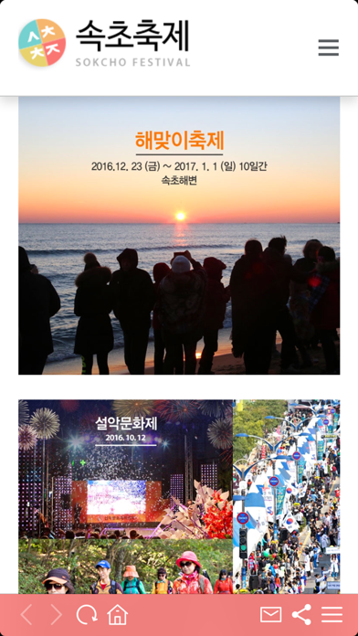 속초의 모든 축제를 한 곳에서! 다양한 축제를 한 눈에! 사계절 주제별 속초 축제의 모든 것. 축제 별 일정과 프로그램을 한눈에. 동해바다와 설악산, 호수와 온천, 자연과 문화가 어우러진 속초축제.
