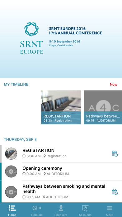 17th Annual Conference of SRNT Europe September 8-10, Prague, Czech Republic Welcome to our app, that will be your useful advisor during the whole conference. With this app you will get all these following features and even more: • Browse interactively through the planned speeches and meetings • Add your favourite speakers to create your own personalized conference schedule to get all the information needed. • Keep up-to-date with conference alerts and new information via push notifications. You will never miss your favourite speaker again • Mobile Map - Never get lost in the conference venue, find all sessions and POIs easily • Useful FAQs - When does the conference start? Where can I stay during the conference? Where is the parking? Will there be any social events? This app knows all the answers.
