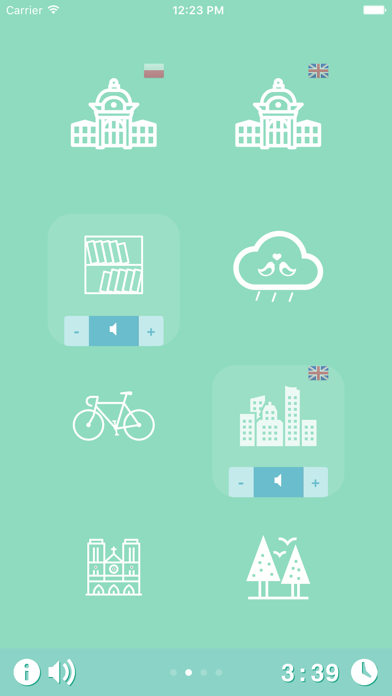 The world can be overwhelming. It can be noisy, and sometimes painfully silent. Ambience offers a wide range of high quality sounds, for you to visit calm, vibrant or remote places within a second, for as long as you choose. How have people used the app? - Stress management and relaxation - Blocking of surrounding noises in public places (busses, metro, ..) - Calming when trying to sleep, relax or meditate - Subtle ambient noises help to concentrate when studying, reading or just contemplating - Also helps to overshadow tinnitus With our app you can visit over 25 unique places, such as: - Train Station Stuttgart (Germany) - Waterloo Train Station, London (United Kingdom) - Krakow Glowny Train Station (Poland) - Sunday Market, Bruere Allichamps (France) - Sydney Airport (Australia) - Amsterdam Airport (Netherlands) - Chicago Airport (United States) - Cafe (United States or Korea) - Playground (Netherlands) - Coastline - River - Church - Ocean waves - Birds - Waterfall - Rain - Storm