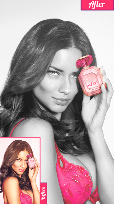 Color Splash lets you quickly and easily give photos a dramatic look by converting them to black and white, while keeping your chosen details in color. This effect draws the viewers' attention to the colored areas. Use your finger as a brush to "paint" sections of your image black and white, or to bring back the original color. Zooming in and out using the two-finger pinching gesture allows you to work on details with pixel-accuracy. It's super quick and super easy.