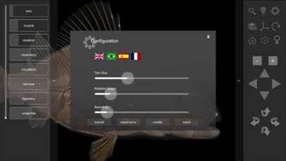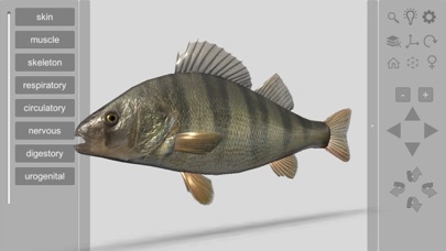 The 3D Fish Anatomy app is an interactive model of a perch, a teleost fish. The software allows the visualization of details of internal and external anatomy of this ray-finned fish. The 3D Fish Anatomy app is an interactive model of a perch (Perca flavens) that allows for the animal internal systems to be viewed and manipulated layer by layer or simultaneously with other layers, at various zoom levels. Individual anatomical structures can be highlighted and display a caption, or they can be removed to permit viewing of deeper structures. This app is an ideal start in the study or teaching of Zoology, Ichthyology and Fish Biology. Available in English, Spanish, French and Brazilian Portuguese. This App is intended to be a supplemental educational resource and should NOT be used as the only source of educational information, nor should the Software be used as medical advice or for medical diagnoses of any kind.