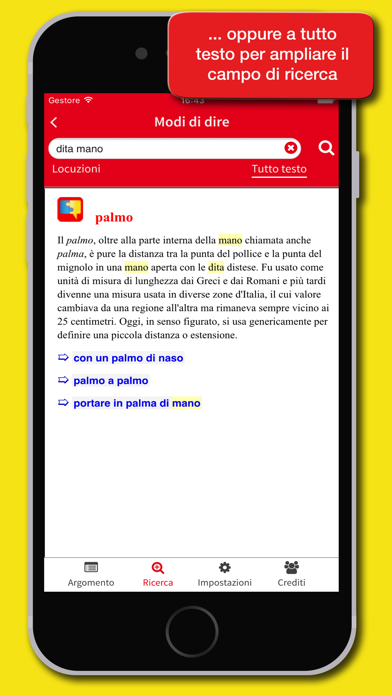 Come tutte le lingue vive, l’italiano recepisce di continuo nuovi modi di dire; alcuni si affermano, altri restano confinati a settori o ambiti specifici, altri ancora scompaiono rapidamente dall'uso. Tutti però costituiscono un vero e proprio specchio dei tempi. Oltre alle locuzioni di più antica origine (avere il bernoccolo della matematica, fare l’avvocato del diavolo), ci sono quelle più recenti del linguaggio giornalistico (macchina del fango, Milano da bere), relative alla politica (salire al Colle, quote rosa), alla giustizia (mani pulite, palazzo dei veleni) o al mondo del cinema e della televisione (missione impossibile, venti di guerra). Utile strumento di consultazione, questa app è anche un’interessante e piacevole riferimento alla scoperta, a volte imprevedibile, della strettissima relazione tra il linguaggio parlato e la storia, la cultura e le abitudini di vita della nostra società. L’interfaccia dell'app consente di eseguire ricerche nell'indice degli argomenti, nelle locuzioni e anche a tutto testo. Banca dati • Oltre 8000 modi di dire • Oltre 1500 argomenti di ricerca Funzionalità principali • Compatibile con iPhone, iPad e iPod con iOS 6 e versioni successive • Interfaccia disponibile in italiano e inglese con impostazione della dimensione dei caratteri • L’app può essere utilizzata offline • Ricerca nell’indice degli argomenti • Ricerca nelle locuzioni o a tutto testo Per suggerimenti, segnalazioni e altre informazioni sui nostri prodotti, contattaci all’indirizzo [email protected]. Segui le nostre iniziative e le novità sulla nostra pagina Facebook all’indirizzo: https://www.facebook.com/edigeosrl