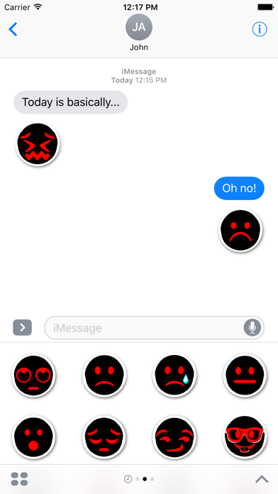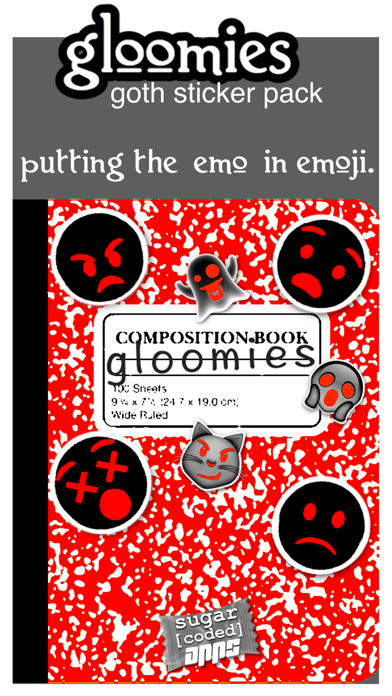 gloomies are goth inspired emoji that really put the 'emo' in emoji. Let's face it, not everything or everyone is all smileys & rainbows. gloomies are a great way to express disdain, anguish, or general mischief in a whimsical way. A great to add personality to your messages. You can peel & place these emoji stickers on ANYTHING in your iMessage conversation... text bubbles, images, or even other stickers. Just one of the many great iMessage Sticker Packs now available from Sugar Coded Apps.