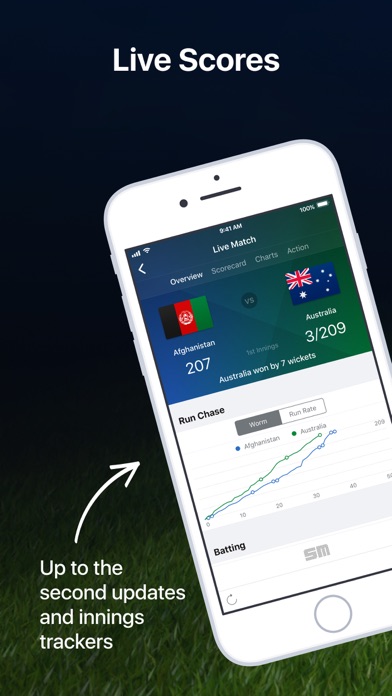 Cricket Live by Sportsmate is built by cricket fans, for cricket fans, combining up-to-the-second live cricket scores from around the globe with the most in-depth statistical database, as well as exclusive analysis and the latest breaking T20 (BBL/Big Bash League), IPL, ODI and Test Cricket news. Whether it’s an intense Ashes Test, the colour and drama of the IPL or the boom crash opera that is the Big Bash League - don’t just follow your favourite cricket team, join them! FOLLOW LIVE Access live coverage of every International Test Match, ODI, and the world’s best T20 leagues (IPL, BBL, WBBL, BPL and CPL) plus selected domestic Australian competitions including the Sheffield Shield and Women’s National Cricket League. • Live cricket scores for each match • Ball-by-ball match commentary • Detailed batting and bowling charts as well as run rate and run chase graphs • Player specific shot and pitch maps TRACK YOUR FAVOURITE SERIES Follow the progress of your team throughout each Test and ODI series, T20 League or Domestic Competition. • Find out the time, date and location of each fixture • See who is playing throughout the series and in each match • Get overall series stats plus individual match stats all in one place • View the latest Competition leader boards GET THE STATS Been thrown a curly cricket question? Need the perfect cricket trivia answer? Don’t worry we have you covered here too with a detailed database of team and individual player stats. • Up to date ICC Team Rankings for Test Matches, ODI and T20 • Runs and Wickets Leader boards for Test Match, ODI and T20 players • Individual player profiles and career stats • Compare players head to head STAY UP TO DATE Cricket Live by Sportsmate also brings you the breaking cricket news, along with exclusive match previews and analysis from Sportsmate’s team of commentators from around the globe. • A thorough overview of the day’s play from around the world via The Sportsmate Hub • Access cricket news and updates about your favourite teams • Watch and listen to videos and podcast series on demand • Personalise alerts so you never miss any of the action, cricket scores or latest news DOWNLOAD NOW Cricket Live by Sportsmate is available FREE for all cricket enthusiasts in Australia and around the world. Don’t miss a minute, download now and start tracking live cricket scores today! NEW FEATURES COMING SOON With some exciting updates coming in 2018, we’d love to hear from you how we could make the Cricket Live app even better. Please send all feedback to [email protected], tweet us at @Sportsmate or use the feedback form inside your app’s Settings. ABOUT THE DEVELOPERS Founded in 2009 and based in Melbourne, Australia, Sportsmate Mobile is an Independent Sports Media company which creates and distributes mobile applications focused on delivering lightning fast sport scores and stats to sports fans all over the world. With over 10 million global downloads, we are Australia's number one sports app network. Our growing suite of apps is built by a dedicated team of sports mad app developers, designers and content creators who are passionate about delivering content sports fans crave.