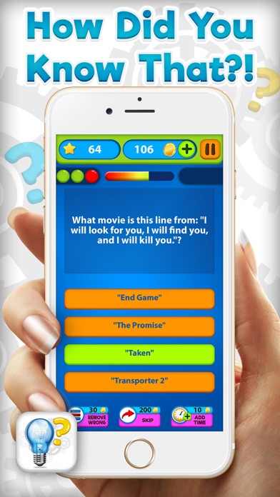 Put your knowledge to the test, start the ultimate trivia quiz and tell us just How Did You Know That?!! Become general knowledge expert with the best guessing game that will take you through multiple fields to test your wit and intelligence! You can compete with your friends in different categories and measure up your trivia knowledge! Challenge them right now, since this amazing quiz app is available for free download! How Did You Know That?!! quiz features: - Put your general knowledge to the test! - Easy to use app interface - Use your wit and choose the right answer - Guess the right answer! - Watch out! You will get negative points for wrong answers! - Challenge your friends. - Share your results on social networks – Facebook, Twitter and Instagram Become the ultimate trivia quizzes winner! Become a pro at answering trivia questions and get the highest score among your friends with the amazing new How Did You Know That?!! quiz! Start the challenge and slide through categories to test your knowledge and awareness. This addictive guessing game will keep you at the edge of your seat since you never know what question is next! Use your wit and strategy! Check how much you really know about geography, history, science, music or movies by entering the greatest trivia challenge! There are different levels of difficulty so everyone can have fun playing; kids, teens and adults! Get this crazy guessing game for iPhone now and play it for free!
