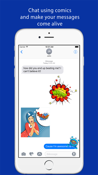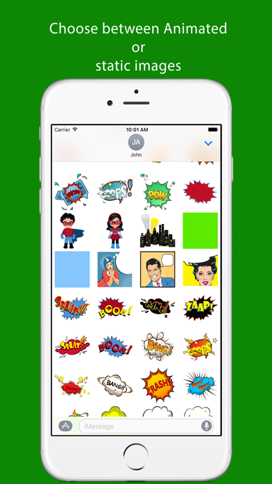 Comic Stickers was created by a comic book fanatic for other comic book fanatics. Use the comic stickers to make you iMessages interactive and fun. There are animated stickers and also static stickers to choose from. Have fun messaging with Comic Stickers!