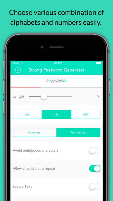 No idea for strong password? Password Generator can help you! Features - Generate a strong password with only one tap. - Adjust the combination between alphabets and numbers in password easily. - Simple and easy-to-use interface Download now and you will love it.