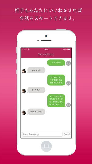 Serendipityとは、『ステキなヒトを偶然発見してしまう才能』という意味です。このアプリは、あなたにその才能を与えてくれます。 普段何気なく生活しているあなたの周りには、あなたの夢、目標をサポートできるステキな人たちが実はたくさん存在します。 それはビジネスパートナーかもしれないし、恋の相談相手かもしれません。偶然の出会いが、必然な出会いに変わるのです。 ■ユーザー登録からわずか2分でアプリをスタートできます。 ■人工知能×位置情報があなたにぴったりな出会いをレコメンドしてくれます ・人工知能がプロフィール情報を解析し、あなたにとって最も価値ある出会いを教えてくれます! ・位置情報により、あなたの出会いをサポート! ■ステキな人が見つかったら、 相手のプロフィールをチェックし、あなたのために何をしてくれるか確認してみましょう。もし、あなたの求めていたステキな人だったら?内緒で「いいね」をしてみましょう。相手があなたに「いいね」をしていなければ相手には通知されません。 また、相手に気づいてもらいたい場合は「want」で通知を送れます。 ■相手が承認した場合、会話をスタートできます さっそく、夢、目標、仕事、恋愛、なんでも相談してみましょう。もちろん、相手の相談にも乗ってあげてください。 お互いのGive&Takeが大切です。 あなたが承認していない場合、相手からメッセージが届くことはありません。 さぁあなたもSerendipityという才能を手に入れ、夢を実現しましょう! ※Continued use of GPS running in the background can dramatically decrease battery life. バックグラウンドでGPSを利用し続けた場合、バッテリーの持ちを悪くすることがあります。