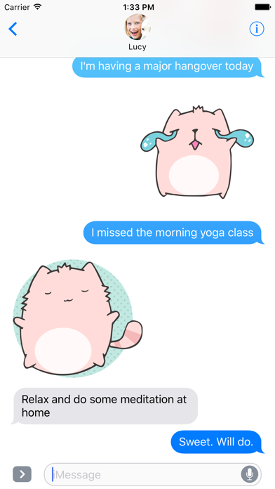 Express yourself with Pink Cat Pinku, kawaii neko stickers. With these epic cute animated emoticons you can decorate your photos and send super sweet messages to your friends. Pink Cat Pinku is a fun iMessage sticker pack with 41 different expressions. (4 animated) It looks like a cotton candy with its peachy pastel pink color body and the mint green, hot pink, polka dotty items. Use this happy cartoon character smileys with hearts and kawaii anime-like body gestures in your daily conversations. This cute cat will make your day with its lovely attitude. You can express your strong feelings such as happiness, in love, cuddly, sleepy, tired, fancy, hangover, angry, relieved, excited, surprised, bored, content, shy, winking, careful, naughty, joyful, evil grin, impatient.. With Pink Cat Pinku Stickers Pack on iMessage, you can: EXPRESS yourself with these super cute stickers in your iMessage chats SEND cute stickers to your friends CUSTOMIZE and DECORATE your photos with kawaii stickers PLACE stickers anywhere on your iMessages and photos Tips for installing and using Sticker Packs: * To install sticker packs, go to your iMessages, tap the icon next to the compose field and go to the sticker store. * To use a sticker, just tap on the sticker you want and send it. You can also touch and hold a sticker to place it on another sticker or photo. The person you are chatting can also add a sticker on top of these photos and stickers. It is super fun! Specially hand selected for kawaii neko cute cat fans, by the makers of Chibi Me app! (Super cute avatar creator downloaded over 2 million times with more than thousands of 5 star reviews)