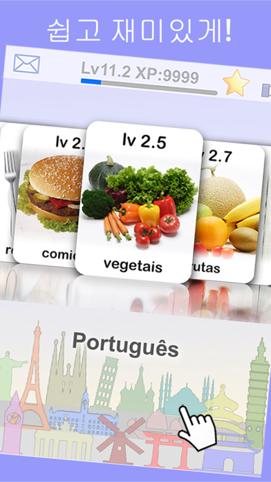 "외국어 배우기에 정말 좋은 어플이에요""앱에 들어있는 사진들이 정말 예뻐요, 완전 일본 스타일 ""재밌게 배울 수 있는 것 같아요""정확한 컨텐츠의 고퀄리티의 앱을 만들어주셔서 감사해요""이게 무료라니 믿을 수 없어요"--- 쉽고 재미있게 배울 수 있습니다 --- 카드에 써져있는 단어를 읽어주는 원어민의 발음을 듣고 따라해보세요! 쉽고 재미있게, 그리고 효과적으로 단어를 배울 수 있습니다! 세가지 Learning modes : ・One-card Mode : 단어카드들을 통해 재미있게 배우실 수 있습니다.・Overview Mode : 모든 단어카드들을 빠르게 훑을 수 있습니다.・Shuffle Mode: 암기하는 것을 돕고 배운 것을 테스트 할 수 있습니다. --- 원어민이 번역한 50가지 언어 배우기---영어, 프랑스어, 스페인어, 독일어, 이탈리아어, 일본어, 중국어 번체(대만어), 광동어, 중국어 간체, 터키어, 한국어, 포르투갈어, 스웨덴어, 네덜란드어, 폴란드어... 등.저희는 외국에 살고 있고 새로운 언어와 새로운 문화를 배우는 것을 좋아합니다. 또한 저희는 실제로 외국인과 아이들에게 언어를 가르친 경력이 있습니다. 이 앱은 우리의 교육 경험과 과학적 방법을 통해 당신의 흥미도를 높일 것이며 효과적으로 공부할 수 있게 도울 것입니다.원어민 발음, 정확한 문법.--- 무료 컨텐츠---카드놀이를 통해 포인트를 쌓고 레벨 업을 하면 새로운 카드를 무료로 받으실 수 있습니다! 게임하듯 재밌게 배워봐요! 30개 이상의 카테고리들 : ・기초적인 일상 회화 ・숫자, 색깔, 동물・음식, 야채, 과일・관광, 교통, 쇼핑, 호텔 (새로 업데이트됨)・신체, 날짜, 가족, 길찾기, 날씨 (새로 업데이트됨)・직업, 취미 등등 (곧 업데이트 됩니다!)
