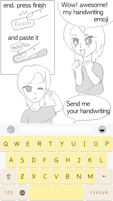 [ pencil + keyboard ] handwriting Emoji, cursive Key label Type your own Font. Talk with Friends in handwriting ** special keyboard for you you can make handwriting font in host app simply, font is made by finger drawing in extension keyboard, you can make text emoji from handwriting font anywhere using keyboard, you can make handwriting text by just typing you can get a lot of text quickly by not drawing but typing it is useful and exciting now you can talk in handwriting with friends - colorful font and background color - two mode (handwriting or normal system keyboard) - 100% custom for you (key label has changed from your handwriting font) - various keyboard style - handwriting memo, email signature, etc.