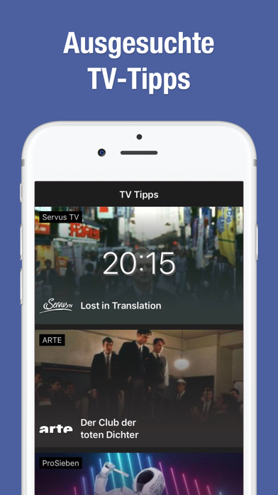 Kostenloses Fernsehprogramm von TV.de für Sender aus Deutschland, Österreich und der Schweiz. • TV-Programm-Übersicht für 14 Tage • Sender individuell einstellen und sortieren • Mit über 140 Sendern, inkl. Sky • Umfangreiche Sendungsbeschreibungen • Trailer, Bilder, Schauspielerinfos • Tagestipps und Highlights • Erinnerungsfunktion • Sender-Tagesübersicht • Einfache Wisch-Navigation Und vieles mehr... Jetzt laden und ausprobieren! ▩ Upgrades Ein optionales monatliches Upgrade für Werbefreiheit (0,99 €) ist als Abo oder Einmalkauf verfügbar. Abos verlängern sich automatisch und können bis 24 Stunden vor Ende des Abonnementzeitraums über iTunes gekündigt werden. Nicht genutzte kostenlose Testzeit verfällt mit Abschluss eines Abos. ▩ Feedback Verbesserungsvorschläge? Etwas funktioniert nicht? Dann lass es uns wissen und wir helfen gerne weiter! Support: [email protected] AGB: TV.de/agb Datenschutz: TV.de/datenschutz