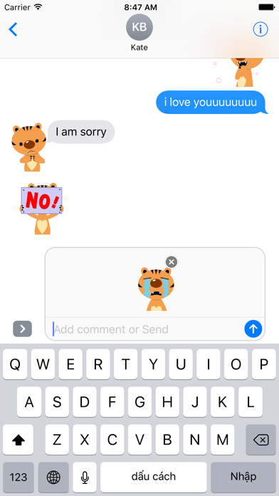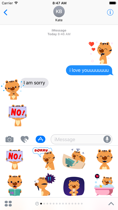 "Lonely Tiger" is animated stickers with image of cute tiger. Because the words are not enough, tell your friends and family how do you feel or what you think with this set of cute "Lonely Tiger". Do you feel happy, angry, scared, surprised? Say it with a image. It is 20 animated stickers. Let's enjoy!