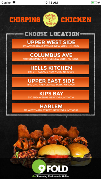 Mobile food ordering application for Chirping Chicken ->Make a choice from menu ->You want to pick it up yourself or want to get it delivered to your doorstep ->Pay by credit card or by cash ->Do you want catering service ->Pre order your food *We take orders in specific hours. Chirping Chicken