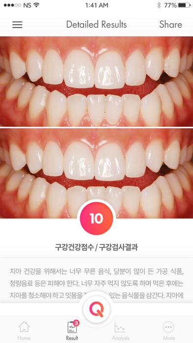 구강 내 치태, 치석을 탐지하여 사용자의 구강 건강을 수치화하여 알려줍니다.