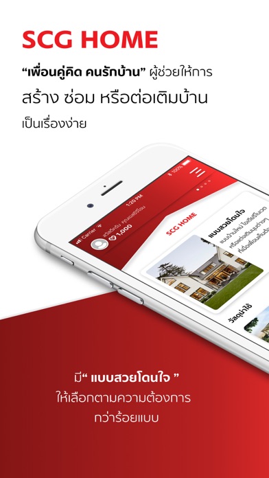 SCG HOME “เพื่อนคู่คิด คนรักบ้าน” แอปพลิเคชั่นที่จะทำให้เรื่องสร้าง ซ่อม หรือต่อเติมบ้าน เป็นเรื่องง่ายขึ้น - แบบบ้านสวยโดนใจ เราเตรียมไอเดียแบบบ้านสวยโดนใจ ตามสไตล์กว่า 200 แบบ รวมทั้งไอเดียแบบตกแต่งส่วนอื่นๆ ไม่ว่าจะเป็น ห้องน้ำ โรงจอดรถ พื้นที่สวนนอกบ้าน ไว้ให้คุณเอาไปใช้กันแบบชิลล์ๆ - พูดคุยกับผู้เชี่ยวชาญ ปรึกษาหาไอเดียได้ทุกเรื่องไม่ว่าจะเป็น… บ้านสร้างใหม่/ต่อเติม/ปรับปรุง สิ่งที่เจ้าของบ้านควรรู้ และยังช่วยคำนวณค่าก่อสร้างเพื่อให้ได้งบประมาณที่ดีต่อใจ - ออกแบบบ้านที่ใช่ หากต้องการแบบบ้านที่ตรงกับความต้องการมากขึ้น… สามารถนำมาให้นักออกแบบมืออาชีพ ทั้งออกแบบภายในหรือภายนอกบ้านให้สวยครบทุกฟังส์ชั่นสำหรับทุกคนในบ้าน - วัสดุ/บริการน่าใช้ ไม่ว่าจะหาวัสดุ เปรียบเทียบคุณสมบัติ และราคา หรือหาบริการปรับปรุง ต่อเติม ซ่อมแซมแบบเบ็ดเสร็จ สามารถชมและช้อปได้ง่ายๆ - คำนวณงบที่ใช้ หมดปัญหาน่าปวดหัวกับคำว่า “งบบานปลาย” เราช่วยวางแผนและคำนวณงบก่อสร้างที่ใช้ให้คุณมั่นใจได้ก่อนเริ่มงาน - สินเชื่อบ้านไวไว อยากสร้าง/ปรับปรุงบ้าน แต่เงินไม่พอ แก้ได้ไม่ยาก กับบริการทางด้านสินเชื่อคุณภาพ อนุมัติเร็วดั่งใจ เช็คสถานะได้ตลอดเวลา เพื่อให้บ้านในฝันของคุณเป็นจริง - ติดตามสถานะ ทุกครั้งที่เราไปช่วยสร้างบ้าน/ต่อเติม/ปรับปรุงบ้านให้คุณติดตามความคืบหน้าของงานก่อสร้างได้บนมือถือ ไม่ว่าอยู่ที่ไหนก็ดูได้ เพิ่มความสะดวก สบาย ไม่ต้องเสียเวลา - สะสมแต้ม สะสม Heart point จากการซื้อสินค้า เพื่อแลกซื้อสินค้าหรือของรางวัลต่างๆ มากมายในแอปพลิเคชั่น