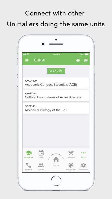 Welcome to University Hall, UWA! In our pursuit of providing our residents the best college experience possible, Our residents now have access to The UniHall App. We strive to help facilitate our residents to make the most out of their stay at UniHall, and so we have created this platform to help communicate everything going on around the college. Our residents have access to all our events, important contacts, the dining hall menu and much more through this state of the art application. UniHall also values the importance of academics, and our belief is that at college, students should have the ultimate learning experience. To help residents along this path, the UniHall App has an academics area. Here our residents can discover other UniHallers doing the same units they are. Every unit has its own discussion board, so UniHallers can have discussion directly within the app. Our vision is for all of our residents to learn and grow during their time with us, so download the app, and lets make the most of your stay at UniHall!