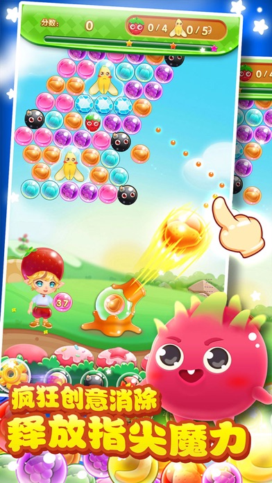 泡泡龙萌宠大战是一款益智类单机手游,基于传统泡泡龙玩法,玩家操纵树桩来发射小伙伴,三个以上相同颜色的小伙伴相碰撞即可以消除,将场景中所有的小伙伴全部消除后,视为过关,整个游戏一共6大关,每大关共25小关,每大关玩法略有不同,关卡中可以使用各种道具来消除一些障碍,是一款老少皆宜的精品游戏。 泡泡龙大乱斗到极限的宠物战队风格,游戏支持BOSS对战。小伙伴们历险途中会遇到各种怪物,它们会石化、会喷火、会变色等等,玩家只需要打怪升级后便可将怪物变为宠物,宠物可以帮助玩家进一步升级。另外游戏中最为突出的玩法就是组合技能,奥义模式的引入,让炸弹更具威力,让闪电无与伦比。记住,组合技能才是绝招中的绝招!!画面炫到爆,玩到爽翻天!!!
