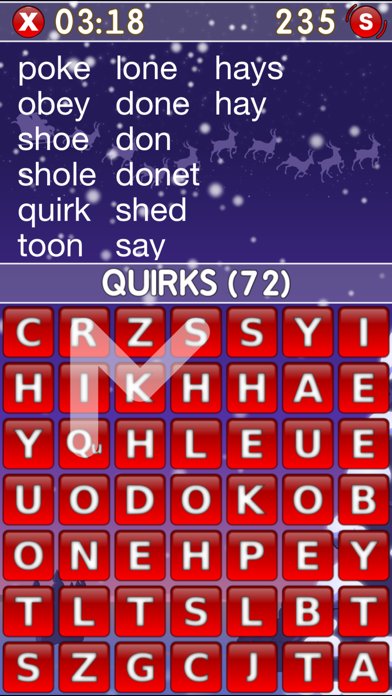 Aaaah Christmas. A time of peace and joy. A time of festivities, and a time for Word Shaker Christmas. Enjoy this special themed version of Word Shaker, the word search game with a twist! To add to the fun that has been experienced by thousands of users, we now introduce the hourly tourney games! Each hour there will be a special competition all over the world. You can play the same board as everyone else does, with a random size and time limit and see how you hold yourself compared to everyone else out there. So prepare for this hourly battlefield of vocabulary and knowledge, because everyone will have the same amount of luck. In this case, the finger is mightier than the sword! Good luck, and have fun!