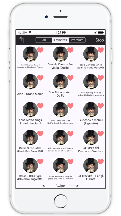 • • • • • • • • Check it out! • • • • • • • • Enjoy Mozart's music anytime. Available on iPhone/iPad. Runs in background mode. ◆◇◆ Core Features ◆◇◆ • Fast loading • No registering needed • iPad ready ! • HQ sound. • Simple, fast and easy to use interface. • The application runs in the background. TRACKLIST 1. 'Anvil Chorus' from Il trovatore (The Royal Opera) 2. Aida - Grand March 3. Anna Moffo sings Ernani. Involami 4. Callas O don fatale (Eboli) Don Carlo 5. Callas - Bella figlia dell'amore (Rigoletto) 6. Daniela Dessi - Ave Maria (Otello) 7. Don Carlo -- Auto Da Fe 8. Don Carlo, Dio Che Nell'Anima Infondere Amor 9. Un di felice, eterea La Traviata 10. Ah la paterna mano Macbeth 11. Jussi Bjorling Di' tu se fedele Un Ballo in Maschera 12. La donna e' mobile (Rigoletto) 13. La Forza del Destino - Overture 14. La Traviata - Parigi, O Cara 15. La traviata - Prelude 16. Macbeth Patria oppressa 17. Aida - Ritorna Vincitor 18. Maria Callas - Caro Nome 19. Maria Callas Tacea la notte placida - il trovatore 20. Maria Callas - Pace, pace mio Dio - Forza del Destino Verdi, 1954 21. Maria Callas - I Vespri Siciliani - Merce, Dilette Amiche - Bolero 22. Mario del Monaco Ettore Bastianini Solenne in quest'ora La Forza del Destino 23. Mario del Monaco Quando le sere al placido 24. Mario del Monaco Questa o quella (Rigoletto) 25. Messa da Requiem - Dies iraes 26. Messa Da Requiem Ingemisco 27. Mirella Freni Come in quest'ora bruna S. Boccanegra 28. Montserrat Caballe' - I Masnadieri - Lo Sguardo Aveva Degli Angeli 29. Morro', ma prima in grazia. Un ballo in maschera 30. Nabucco - Chorus of the Hebrew Slaves (Va, pensiero, sull'ali dorate) 31. La Traviata brindisi 32. Aida - O patria mia 33. Placido Domingo - Celeste Aida 34. Rolando Villazo'n- Giuseppe Verdi - La mia letizia infondere 35. Shirley Verrett & Piero Cappuccilli - Macbeth, Brindisi & Finale act II. 36. Squilli, echeggi la tromba guerriera 37. I due Foscari Dal piu' remoto esilio...Odio solo ed odio atroce 38. O Carlo ascolta ... Io morro' 39. Viorica Cortez Stride la vampa - Il Trovatore • • • • • • • • Check it out! • • • • • • • •