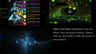 Welcome to the Chakra Experience. Here you will begin your ultimate Chakra journey in full 3D & HD. Enjoy a blend of custom music and visuals to help you meditate to each chakra or simply enjoy the music/visual combo. Chakra Frequencies is about Enjoying a blend of custom music and visualizations for each Chakra, without the need of WiFi or G3 Internet. The Chakra Frequencies App is also designed to give people an app that has ALL the Solfeggio Frequencies mixed with custom music and visuals. There are also the RAW Hz frequencies for the 7 Chakras. This app is intended for seasoned Spiritualists & Pagans, if you're not familiar with Chakras or Chakra Frequencies, please research them before buying this. FEATURES: • 14 Chakra songs, each with their own 3D/HD visuals • 14 visuals for each chakras, within two categories: Fractal and energy • Full Screen 3D & HD visuals, for each chakra • Frequencies alone, from 1-7 • Play all music tracks randomly (14 tracks total) • Play All chakra music from 1-7 & from 7-1 • More features and content is added with each update • Hide visuals (Battery saver mode) You need to plugin the headphones or plug the phone/tablet into Stereo speakers for the best experience, but make sure you always, ALWAYS turn OFF the devices equalizer so their is no distortion. This goes for your phone/tablet as well, so never use these frequencies if your equalizer or sound booster is on, to check - go to your sound settings or multimedia settings and turn off all sound enhancement options that may cause distortion.