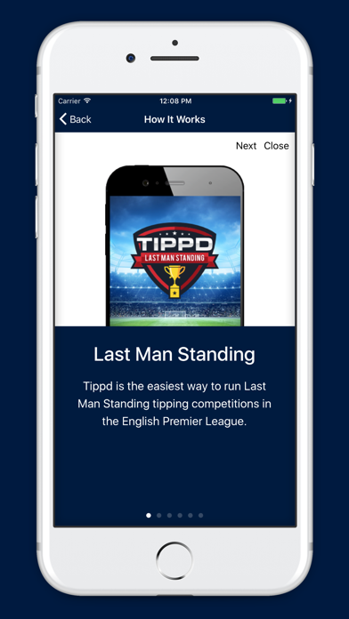 Tippd - Last Man Standing is the easy way to run Last Man Standing football tipping competitions against real matches in the EPL (English Premier League), AFL (Australian Football League) and NRL (National Rugby League). The game format is really simple. Each player selects 1 team to win each round from a live football league (e.g EPL, NRL or AFL), if your team wins, you play on. Draw or lose and you’re out! The Last Man Standing is the winner of the game. You cannot choose the same team twice in a game, so be strategic with your picks! A new and easy way to play amongst your friends, work or club mates. Tippd takes the hassle out of running Last Man Standing tipping competitions. Play games for free, using our virtual currency (credits) or simply bragging rights - it’s easy with Tippd - Last Man Standing. Set up a game today from one of our available leagues, invite your friends and get started now. All tips must be in 15 minutes before the first kick off of the round. Missed the start of the season? Don't worry. With LMS you can start a game with your friends anytime throughout the season. - Tippd lets you setup and manage your LMS game in minutes, whether it’s a fun game amongst mates, or playing for credits! - Save time chasing up your friends by letting Tippd take care of all the updates, reminders, notifications and results - you just focus on playing the game. Already signed up? Download the app and login to see all your current games. If you’re new to Tippd? You can download the app, create a new game and get started right away. If you’ve been invited to a game, you can join that game once you’re registered. ** FEATURES ** - Automatic management of Last Man Standing competitions - Credit System. Each player starts off with 100 credits. Anyone can set up a game to play for free or use the virtual currency (credits) to buy-in, and play to win! - View the full fixtures and results for games in your league - View live scores during matches - Receive reminders before a round kicks off, for those who have forgotten to get their tip in. - At the end of each round, you will receive a summary notification to see who’s still on or find out the winner. - Simple Admin section for remove players and update game details etc. - Invite your friends to join using WhatsApp, Facebook or Email/Sms. ** SUPPORTED LEAGUES ** UK/Europe: English Premier League (La Liga, Serie A, Bundesliga and more **Coming Soon**) Australia: AFL, NRL, A-League USA / Rest of the world: **Coming Soon** (Argentina Primera Division, Brasileiro Série A, Mexican Liga MX and many more)
