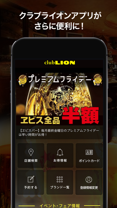 club LION アプリが登場しました! イベント情報や最新情報をはじめ、ブランド毎のメニューやクーポンなどのコンテンツも充実しています。是非ダウンロードしてみてください。 ●ポイントカード アプリとclub LIONCARDが1つになりました! お会計の際にポイントカードを提示するとポイントを貯めることができます。 日々のご来店をより便利にします。 ●ブランド一覧 アプリに掲載されているブランドが一覧で確認できます。 ●最新情報 イベント情報やニュースリリースなど、最新情報をアプリでお届けします。 ●クーポン 店舗で使えるお得なクーポンをお届けします。 (クーポンが配信されない期間もございます) ●店舗検索 現在地から近くの店舗をご案内します。 ブランド毎に店舗を検索することもできます。 ●予約機能(一部店舗) 店舗検索からお店を予約することができます。 【プッシュ通知について】 お得な情報をプッシュ通知でお知らせします。アプリの初回起動時にプッシュ通知を「ON」に設定するようお願いします。なお、オン・オフの設定は後から変更もできます。 【位置情報の取得について】 近くのショップを探す目的、その他の情報配信の目的で位置情報取得の許可をアプリからさせて頂く場合がございます。 位置情報は個人情報とは一切関連するものではなく、また本アプリ以外での利用は一切行いませんので安心してご利用ください。 【著作権について】 本アプリに記載されている内容の著作権は株式会社サッポロライオンに帰属し、いかなる目的であれ無断での複製、引用、転送、頒布、改編、修正、追加など一切の行為を禁止いたします。