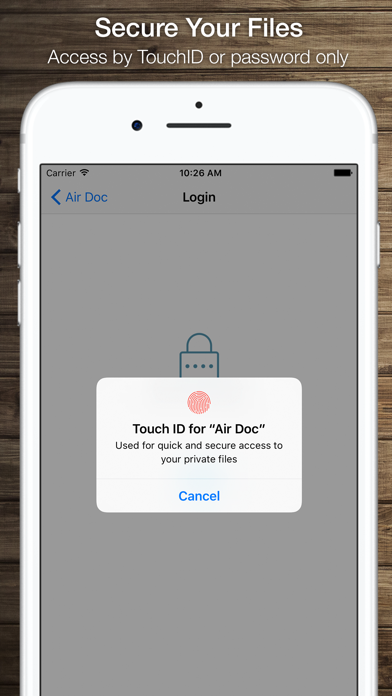 Air Doc is the ultimate solution for transferring files - documents, images, songs, you name it - to and from your iPhone or iPad without any cloud solution. Your files never leave your local network and every transmission is encrypted - protect your privacy. SECURE FILE SOLUTION Air Doc is the long missing file transfer solution for your iOS device. Simply drag and drop files to your iPhone or iPad. Your files never leave your network and are encrypted on transmission. Transfer files between iOS devices using AirDrop. You can archive multiple files (zip) and send them via email or messages. PRIVATE AREA You can move your files into a private area that is secured by TouchID or password. WEB ACCESS Access your files from any operating system (OSX or Windows) using your browser. Even stream movies directly from your iOS device to your browser. Use Air Doc to replace your Mac's secondary display with your iPad vor viewing documents - enhanced by the touch capabilities of your iOS device, but without the need to install any drivers. Simply drag movies and songs to your iOS device to view them offline - even stream to your AppleTV using AirPlay. The Air Doc App for your Mac is available in the Mac App Store. NETWORK From Mac to iOS: all your devices must have access to the same LAN (or WLAN) - no additional network configuration is needed. From iOS to iOS: no network configuration needed at all. FEATURES - transfer files between iPhone/iPad devices using Air Drop - import or export images from camera or photo library - private file area secured by TouchID and/or password - Live Preview: every time you save your graphic, the preview on the device will be updated - transfer files to and from your iOS device, simply by drag&drop - upload your files to and from iCloud Drive or Dropbox and have them available anywhere - full multitasking support on supported iPads - upload and download files using your web browser - send and display a screenshot to your iOS device with one click or by hotkey (Cmd-Alt-S) - send and display the current clipboard with one click or by hotkey (Cmd-Alt-V) - supported document formats: pdf, doc, xls, pages, numbers, txt, rtf - anything QuickLook can show - supported multimedia formats: m4v, m4a, mp3 - anything iOS can play - Air Doc for iOS is an universal app, runs on iPhone and iPad - stores your last uploads for access when offline - zero configuration network support (Bonjour) USE CASES - share photos with your friends on the go - preview your work in progress directly on your iPhone or iPad - use it as an enhanced secondary display for your Mac - sync files between your iOS devices using iCloud - transfer files from any operating system in your browser - transfer your documents from any Mac fast and easy just by drag&drop - like a wireless USB stick - simply drop a web url and it will immediately open in a browser on your iOS device - use it to distribute handouts without the need for email, iTunes or any cloud space - fast and easy - drop movies to watch them on your iOS device and take them with you, even stream your movies using AirPlay - drop movies or songs to your friends iOS device without any pairing or cables - store recently transferred files on your iOS device for later viewing (without the need for any network access) We always want to improve our apps, so if you encounter any errors or if you have any suggestions, please write to [email protected]