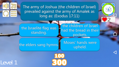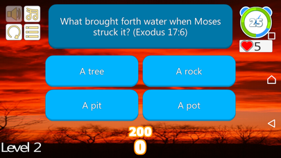 Bible trivia questions and answers like no other. Fun, educational & puzzling! Want to increase your bible knowledge and bible dictionary, but also enjoy a great bible quiz? Try one of the best bible trivia games of the year! Unique, fun and well-thought 750 bible quiz questions are awaiting you packed in 30 levels. You will find quotes, encouraging bible verses, stories, characters and situations. Bible quiz with answers you will have hard time turning off! TEST YOUR KNOWLEDGE OF THE BIBLE The Bible should be the most read books in the world. But let’s be real, it's not. Some people live their whole lives without even owning one. If you have read it, or read some bits and want to test your bible knowledge, this is definitely one of the best apps to do so. This is the bible trivia with answers that will significantly enhance your knowledge. UNIQUE BIBLE QUIZ QUESTIONS AND ANSWERS Our bible quiz game is fun and unique. Most of the questions are unseen before in any other similar app. They are fun and challenging, especially as you progress throughout the levels. This can be a bible quiz for kids too, but generally it is a trivia app for all ages. HOW TO PLAY As we previously said, this bible quiz app is divided into 30 levels. Here are the rules bellow: • Each level must be completed in 80% to unlock the next level. • Each level has 25 questions. If you get 20 questions correct, next level is unlocked • For 20 questions answered, you get 1 star, for 21 questions you get 2 stars and for at least 22 questions you get 3 stars. Stars are used to know how well you knew to answer and eventually restart each level to know all the answers. • The time allocated for each question is 30 seconds and the number of lives each round is 5 lives, giving you the chance to review some questions ------------------------------------------------------------------------------------------- Your knowledge and increased connection with God is only one game away. Respect the Kingdom of God’s influence and sharpen your knowledge of the Bible. We pray that this app will motivate you to read the Bible as well, on a regular basis. ADDITIONAL INFO: - Play button will load the last level unlocked - We will update the questions frequently - Tap the desired number to resume any unlocked level - Response In question is made by pressing the correct version in the allocated time - If the time out of the screen is less than 30 seconds, you have to change the settings for your phone or tablet so it does not interrupts the game. ------------------------------------------------------------------------- Because the database is large enough, in case you will find wrong answers, please send an email to: [email protected] to rectify them. Coming soon in more languages.