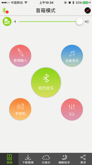 该应用是基于蓝牙4.0的射频技术开发的智能生活应用。 音箱:一键蓝牙连接,随心播放手机音乐,智能控制音箱播放; 多音源控制:HDMI,电台音乐资讯各类音频; 云音乐:海量云音乐资源任你下载,本地下载收藏管理; EQ均衡器:EQ自由调节,总能找到一款你喜欢的音乐风格; 睡眠助手:设置睡眠时间,音乐伴你好眠; 还有更多功能等你来发现!