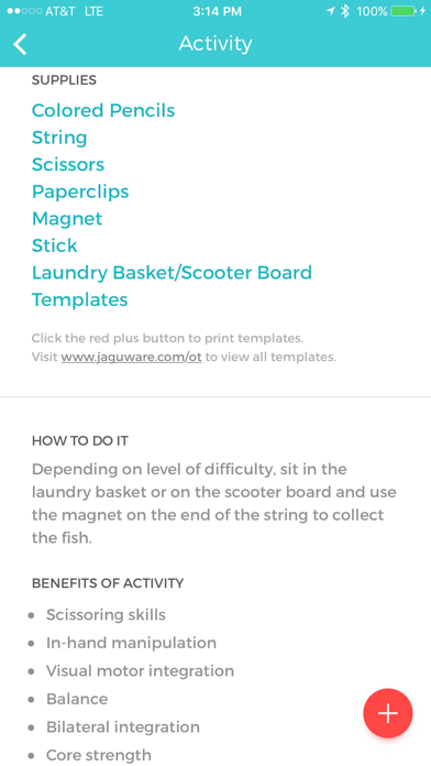 OT at Home is an app designed to provide pediatric occupational therapists easy to access and creative projects to address cognitive, motor, and social skills with the kids they treat. It can be used to create a bridge between the clinic and home environments by providing an accessible resource of activities for caregivers to use at home, under the direction of their child's therapist. This simple tool can be used by the occupational therapist to increase collaboration and overall communication with the caregivers of the children they work with, while at the same time providing families a resource that is user friendly and promotes easy to access, fun activities to do with their children! Features: - A variety of creative and fun projects to address cognitive, motor, and social skills for children with varying diagnoses and ages. - Visually appealing images of project components for quick and easy use. - Enabled camera feature allows users to store and share finished projects with your therapist and others, to enhance carryover at home and motivation for the child to participate.