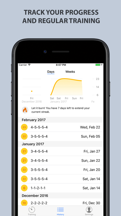 ** FREE TRIAL for one month with following in-app purchase ** IMPROVE YOUR POWER — BY PLAYING A GAME! Train your boulder and climbing strength with Pull-ups Trainer. This app is unique to other Pull-ups Trainers in that is adapts to your current strength and condition while still giving you reachable goals that improve your strength over time. Unlike other apps, Pull-ups Trainer adapts each next training session to your current strength. So if you pause and pull-in again, the app is intelligent enough to set a goal for you that is slightly above your current strength — not just stupidly following a fixed training plan. PRICING AND BILLING DETAILS Pull-ups Trainer offers a free one-month trial that comes with a subscription. By purchasing and renewing your subscription, you receive ongoing value with regular updates that provide innovations of the app experience, feature enhancements and new premiums, at no additional cost. While you are still in the free trial period, the subscription can be canceled at any time without any additional costs or obligations to you. Your account will not be debited until the trial period expires. At the end of the billing period, the annual subscription will automatically renew until you choose to cancel. Without a valid subscription, you can no longer use Pull-ups Trainer. Prices may vary by location and are displayed within the app prior to making a purchase. Subscriptions will be charged to your credit card through your iTunes account. Your subscription will automatically renew unless canceled at least 24 hours before the end of the current period. You will not be able to cancel the subscription once activated. The account will be charged for renewal within 24 hours before the end of the current period, with the same amount as in the previous period. You may cancel automatic renewal by selecting Manage App Subscriptions in your iTunes Account settings and selecting the subscription you want to modify. Any unused portion of a free trial period will be forfeited after the subscription is purchased. Privacy: http://www.berbie.de/trainer/pullups/privacy.html Terms of use: Conditions: http://www.berbie.de/trainer/pullups/terms.html