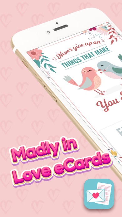 Every romantic soul needs to have Madly in Love eCards! If you are also one of the persons who believe in true love, then you should definitely get this free app as soon as possible. Our love card maker will help you express your deepest feeling towards your significant other and open your heart completely. Make a lovely surprise by sending him romantic eCards form time to time. Show him that he means a world to you! Madly in Love eCards app features: ▶ Check out a collection of beautiful cards! ▶ Pick up an eCard from this gallery you like the most! ▶ Choose the font and the color of the letters! ▶ Add some quote, wish or romantic saying! ▶ Send it as a message or share it on social networks! ▶ Surprise someone you love! Best love confession letters for those who are madly in love! Tell your sweetheart how do you feel about him and how much he means to you. Send him the best designed love notes and romantic greeting cards which take the breath away! Let him know how special and loved he is all the time. Spend a few minutes of your time on card making and win the love of your special someone forever! Send touching romantic notes to the one you love the most! Now you can download Madly in Love eCards app free of any charge. Grab this extraordinary chance to make your beloved happy and very proud of you! Send the sweetest words and greetings and enjoy in love every day! Make your romantic dreams come true in no time!