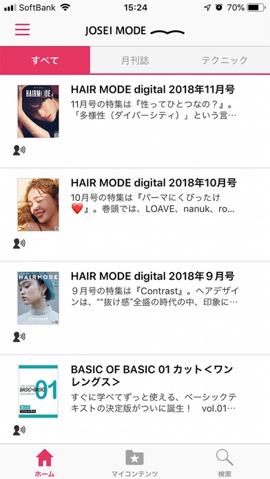 ●美容師向け専門誌を出版する女性モード社の電子書籍閲覧アプリ ・月刊ヘアモードの付録「HAIR MODE digital」をご覧いただけます。 ・サポートを終了した「BASIC OF BASIC」のコンテンツを本アプリで引き続きご覧いただけます。(アプリ引き継ぎ手続きが必要) ・その他、美容師さんのお役に立てるコンテンツを配信中!