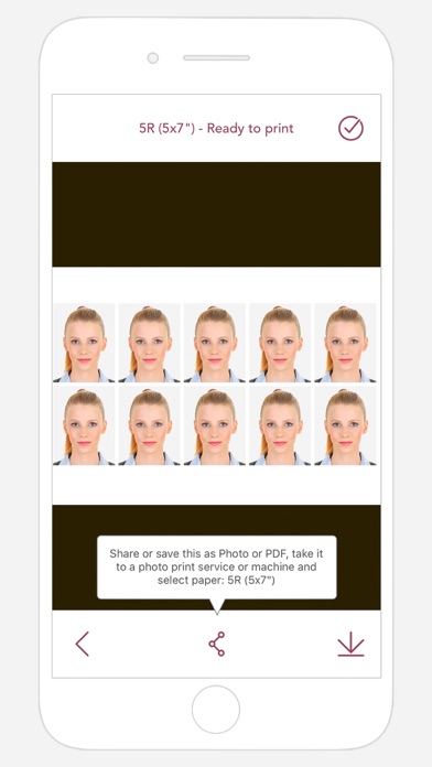 Save time and money by making your own passport photos whenever you need in 3 easy steps: 1. Take photo by aligning face where indicated. 2. Review and select paper size. 3. Share or print This application complies with the passport photo dimensions required by the HM Passport Office and will generate ready-to-print high resolution photos. Once you're done, take it to a photo print service or machine (or use your own photo printer if you own one) and print it using the same paper size as you have selected in the app. A few extra features include: - Easy-to-follow help and example within app - Minimum zoom level to ensure photos will never be out of perspective - Manual zoom adjustment when using rear camera - Ability to crop photo picked from library - Ability to review photo by zooming it in and out - Auto-enhance (auto-adjust lighting when needed) - Paper size selection - Save as image or PDF - Option to save single photo (suitable for online applications) You can print directly from your device by using the sharing option if you have an Airprint capable printer. For feedback or support, please contact us via http://beetpix.com