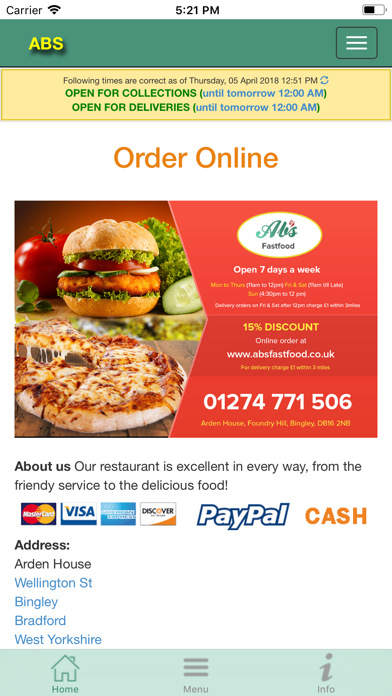 Congratulations - you found our takeaway App! Once downloaded it will enable you to order food from our extensive menu. You will receive emails throughout the order process - 1) when your order has been successfully submitted, Useful features include: – Extensive menu – Optional extras – Repeat order functionality – Delivery distance auto-check – Pay by card – Select to pay by cash on delivery / collection Other helpful information includes GPS directions, opening times and contact details. We hope you enjoy using our App, please let us know what you think by leaving a review below or popping in to have a chat!