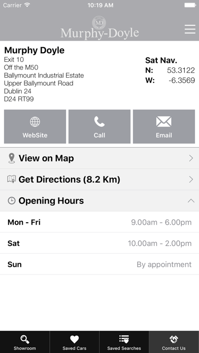 Search our used cars showroom with the free Murphy Doyle app for iPhone and iPad. FEATURES: - Search cars for sale by make, model, year, price, county & many other options - Details include fuel economy data, safety and green rating - Save search criteria - Fully optimised for iPhone and iPad users - Save cars on your device viewing later - Create you own notes for any car - Share used cars on social media - Get directions to our premises
