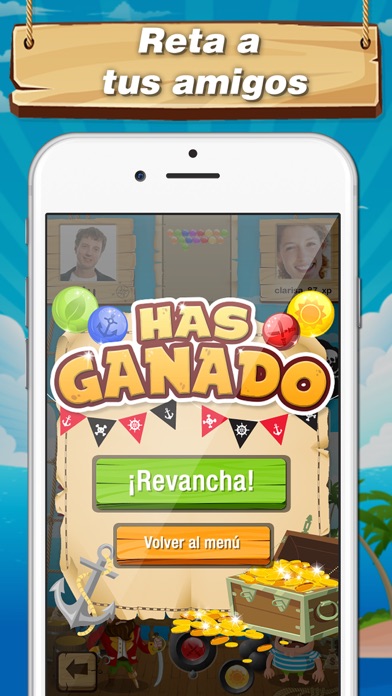 Bobble War with friends es el clásico juego de explotar bolas, pero adaptado para competir con tus amigos o con cualquier otro jugador. Une tres bolas del mismo color y caerán. Tira más de tres bolas y le subirán al contrario. Dispones de tres tipos de power ups para ganar más rápido a tus contrincantes. * 5 bolas al contrario. Si lo seleccionas a tu contrario le subirán cinco bolas. * 1 fila. Seleccionándolo le aparecerá por arriba a tu rival una nueva fila de bolas . * Bomba. Tu bola se transforma en una bomba que tira todas las bolas con las que choque sin importar el color.