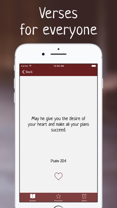 This is a perfect way to get God's Word in your busy life. You get an alert with a new verse every day. This app gives you access to inspirational content. You can: -Receive notifications every day -Save scriptures to favourites -Share verses by Email, Facebook, Twitter, and Messages
