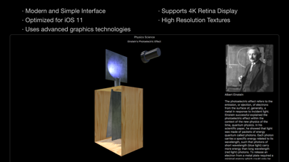 Beautiful Physics Experiments. Modern and Simple Interface. Optimized for iOS 11. Discover the fascinating physics experiments: · Henry Cavendish. · William Crookes. · Albert Einstein · Michael Faraday. · Leon Foucault. · Galileo Galilei. · Heinrich Hertz. · James Joule · Robert Millikan. · Isaac Newton. · Ernest Rutherford. · Nikola Tesla. · Thomas Young. … and more. 3D Graphics: · Move. · Rotate. · Zoom. Useful Information: · Text. · Images. · Diagrams. Uses Advanced Graphics Technologies: · Supports 4K Retina Display. · Full-Screen Mode. · Rendered with Metal Graphics Technology. For PHYSICS EXPERIMENT REQUEST You can improve this app, suggest a new physics experiment. Mr. Proton Studio: Scientific Software www.macproton.com DISCLAIMER Physics Science are the apps that help you to explore the beautiful physics experiments. However, by the very nature of laboratory work, physics experiments can lead to messy, highly toxic, explosive, corrosive, carcinogenic, and all together dangerous results in the real world. Physics Science (this Software and Developer) are only intended for illustration; no warranty, guarantee, or representation is made by Physics Science or MacProton or Mr. Proton Studio as to the accuracy and sufficiency of any information contained herein, and Physics Science or MacProton or Mr. Proton Studio assumes no responsibility in connection therewith.