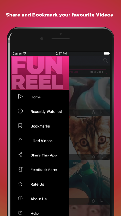 How Fun Reel Spins? Isn't cool to watch all the funny things happening around the world while sitting in your comfort zone? Yeah.. Fun reel catches and collect untouchable topics and viral videos to make your day much better. We will never make you bored! Because you know funny things are happening everywhere all the time and fun reel never stops spinning.. Enjoy the hilarious moments in good quality anytime anywhere in your mobile for FREE! Features ------------------------- •You can see different categories in the app having countless viral funny videos. •You can also search using keywords. •You can bookmark any videos while enjoying it. Later this videos can be picked up directly from the home menu. •You can hit 'like' any videos while enjoying it. Your likes are counted and it will contribute to most liked videos. Always like good ones! •Your recently viewed videos can also be viewed from the menu. •You can catch up with what others are watching or what is getting hot. Just take most liked or popular video section to analyze it. •You can choose the video quality also. •You can share your favourite videos in watsapp, email, hike, imo etc Notes ------------------------- We are not hosting any videos in our servers . It is collected and organized from various resources including youtube , vimeo, dailymotion, facebook etc The content provided in this application is available free on public domain. We do not own the copyrights of the videos . Copyright of the videos belongs to the owners . If you are owner of any videos listed in the app and need it to be removed , just send an email to [email protected] . We will remove it within 48 hours You cannot download videos songs using this app. Video streaming only supported.