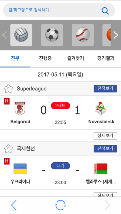 실시간스포츠토토 정보를 라이브로! K리그외에도 프리미어리그,라리가,세리에A,분데스리가,리그1,프리미어십등 유럽축구,해외축구의 경기기록,배당흐름을 한눈에! 축구외에도 NBA,KBL,KBO등 농구,배구,야구,하키,핸드볼,미식축구,배드민턴,스타크래프트 등 전종목 실시간스코어와 실시간배당흐름 확인가능.