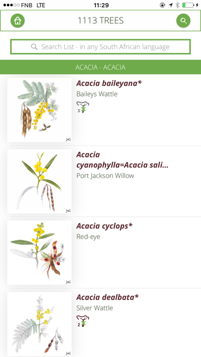 TheTreeApp is a sophisticated tool for smart phones and tablets to identify indigenous and invasive, alien South African trees. This app contains two versions: - TheTreeApp: using colloquial terms and search function - TreeProBotanical: using botanical terms and search function Both versions can be purchased allowing the user to switch from the one to the other. You can choose your location to reduce the Tree List from 1114 to the actual number that grow there naturally. Follow the easy, step-by-step Tree Search process, and match characteristics of your tree to those on the app. Select the relevant tick-boxes and watch as the number in the Tree List reduce! Tree details are in artworks, photographs, maps and texts. The powerful, rapid and highly intuitive search function provides the user with much more than just a keyword search and makes it possible to discover everything about South African trees. Once loaded using WiFi, no internet is needed; but satellite coverage improves the experience. It has an inbuilt education system; based on clicking InfoHotSpots, for explanations about anything that is not clear. Icons and texts cover virtually every aspect of the App's functions. In addition the My Trees function allows you to add and list the names of your tree sightings. You can type in notes and record GPS locations. You can select your primary and secondary language from Scientific, English or Afrikaans, but can search through the trees using any of the 11 South African languages. A glossary gives access to botanical words from/used in other more complex publications.