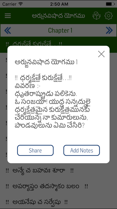 We are proud and happy to launch Bhagavad Gita in Telugu app fully offline. Thanks for downloading the app. We continually strive to provide the app with advanced features to make the app usage very useful and comfortable. The app has many features to facilitate the reader with utmost comfort and ease to read the contents of Baghavad Gita. Some of the features are as follows: Bookmark the desired verse Share the verse through any social media Change the font size to suit the reader's comfort Change the color of the contents of the app Resume reading If you like this app, please do rate and comment : ) Your feedbacks / comments /suggestions are always welcome.