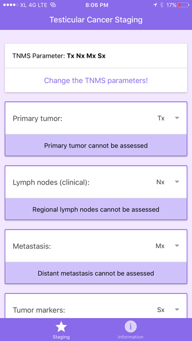 Why should you choose "Testicular Cancer Staging" app? • Based on the latest guideline of testicular cancer. • Simple and very easy to use. • Accurate and precise staging. • Complete information of each T (tumor), N (node), M (metastasis), and S (serum tumor markers) staging. • It is totally free. Download now! "Testicular Cancer Staging" is an app to help medical doctor or urologist to stage testicular cancer using the TNMS system. T (tumor), N (node), M (metastasis), and S (serum tumor markers). The results are combined to determine the stage of cancer for each person. There are 3 stages of testicular cancer: stages I, II, and III. Stage I is the least advanced and stage III is the most advanced. Patients with the least advanced are more likely to be cured and often need less aggressive treatment. "Testicular Cancer Staging" app is based on the information from Guidelines on Testicular Cancer by European Association of Urology, 2015. Any information given in this app should not be used as a substitute for clinical judgment. For more info contact us at: line://ti/p/@luz0355o [email protected] www.imedical-apps.com